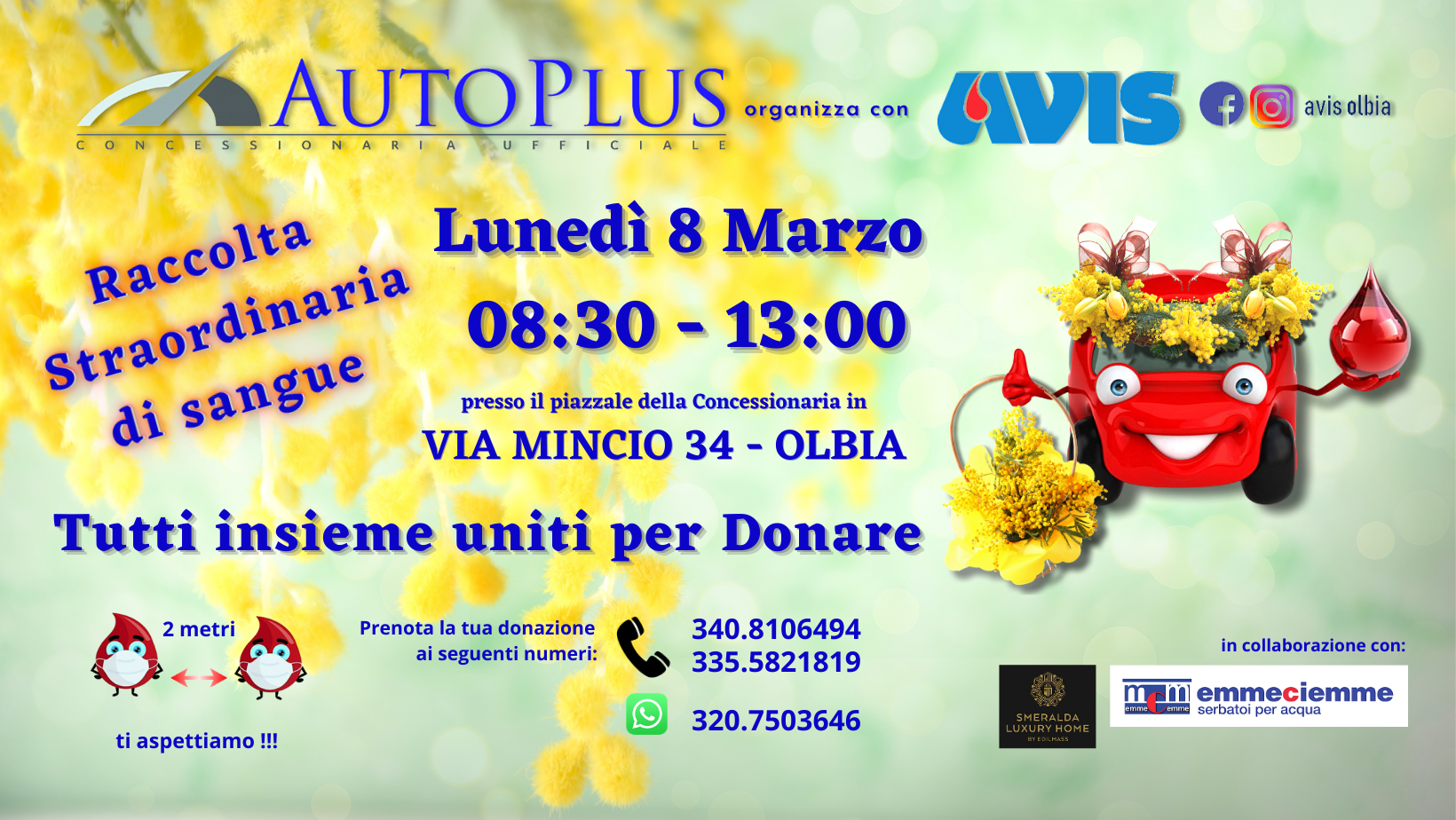 La Concessionaria Autoplus di Olbia, insieme all’Avis e in collaborazione con Smeralda – Luxury Home by Edilmass e Emmeciemme di Massimiliano Mura, ci invita alla 2^ Edizione di un bellissimo evento di solidarietà: