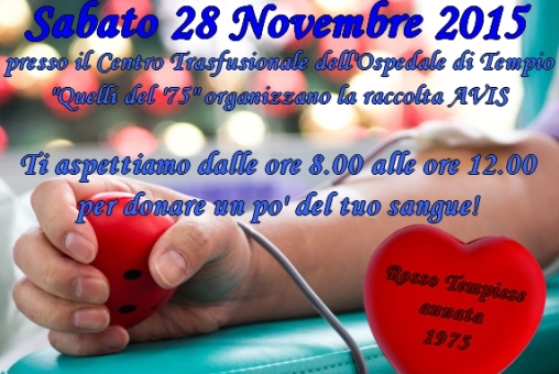 Tempio Pausania, una raccolta sangue “di classe”. Sabato 28 novembre sarà la classe ’75 a promuovere una nobile raccolta di sangue per l’Avis locale.