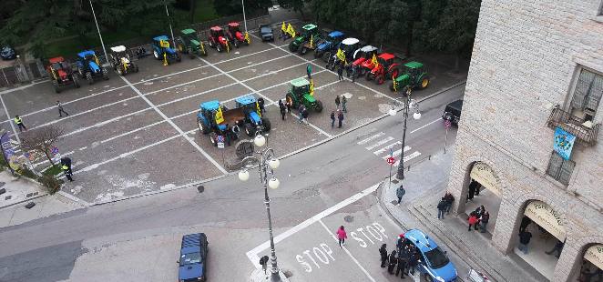 Tempio Pausania, In Piazza per chiedere gli aiuti comunitari. Agricoltori con i loro trattori invadono largo XXV aprile.