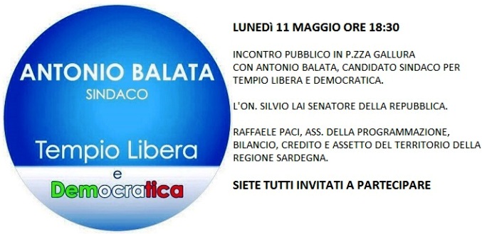 Tempio Pausania, 14 mag. 2015- “Il candidato sindaco Antonio Balata e la coalizione Tempio Libera e Democratica hanno organizzato un…