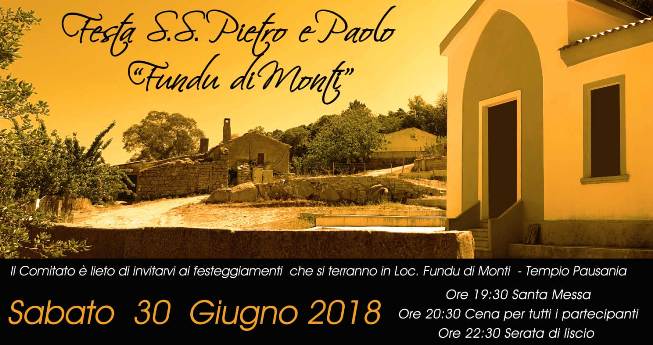 Fundu di Monti-Tempio Pausania, Sabato 30 giugno, la festa di San Pietro e Paolo.