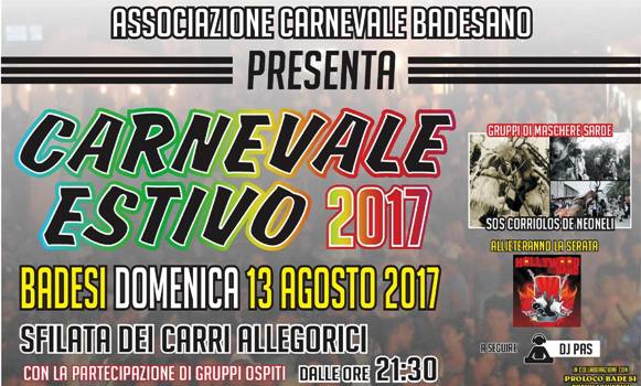 Badesi, 13 ago. 2017- Sabato 13 agosto dalle ore 21.30 vi aspettiamo alla trentaduesima edizione del CARNEVALE ESTIVO BADESANO, sfilata…