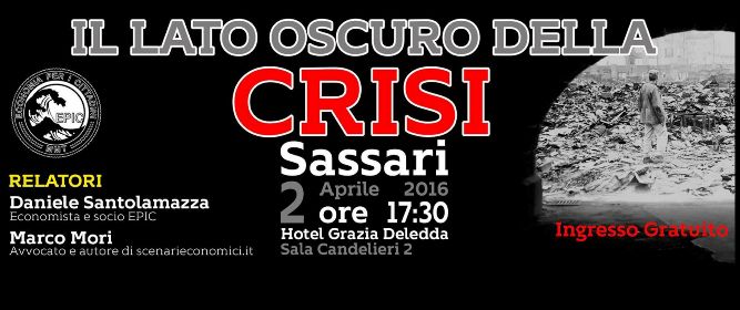 Sassari, Il Lato Oscuro della Crisi, domani a Sassari un convegno per esaminare i veri motivi della crisi. Hotel Grazie Deledda, ore 17.00.